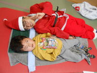 12月15日(月)に、舎生が楽しみに待ち望んでいたクリスマス会ですが、天候不良により残念ながら中止となりました。しかし、翌週の22日(月)にサンタさんが来てくれてプレゼントを配ってくれています。中止となったと聞き、残念そうにされていた舎生でしたが、笑顔で大満足の様子でした。