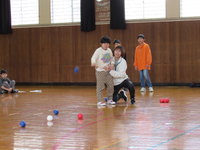 的の中心に、自分たちのボールをいかに近づけるか。友達の好プレーに拍手を送ったり、「がんばれー!」と声援を送ったりと、体育館は終始、活気と笑顔にあふれていました。