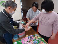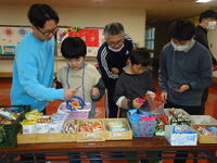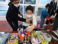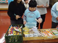 カラフルなグミやスナック菓子など様々な駄菓子が並び、みんな目をキラキラと輝かせていました。お小遣い600円の中で買い物ができるように先生と相談したり、電卓を使用して計算したりしながらじっくりと選んでいました。また、駄菓子の他にも「くじ引き」もあり、「何が当たるかな~?」とドキドキ、ワクワクしながら大いに盛り上がりました。